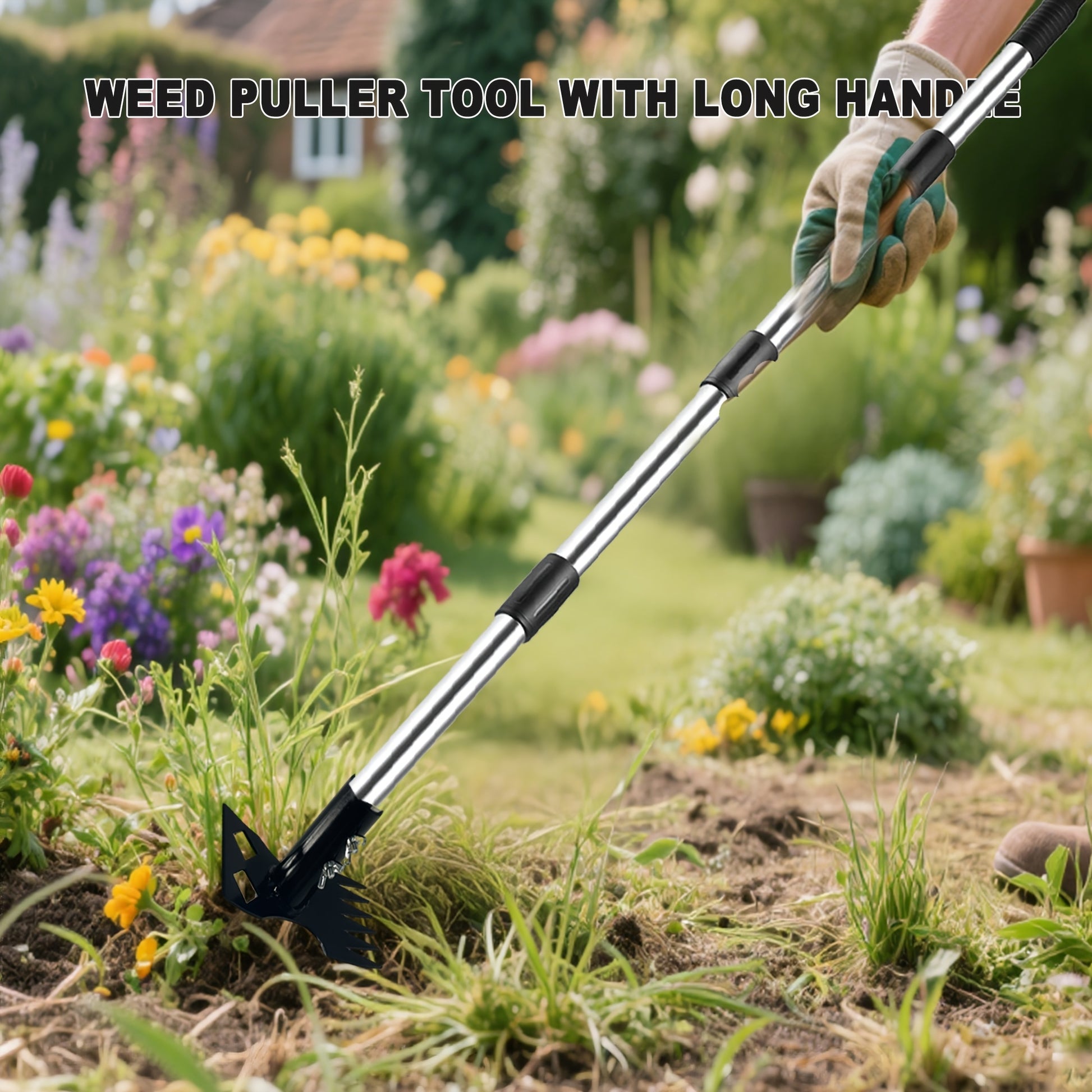 2-in-1 Weed Puller & Garden Hoe Tool - Heavy-Duty Metal Adjustable Long Handle (16.54-59.06inch) for Effortless Weed Removal, Soil Leveling & Yard Maintenance, Weed Removal Garden Tools No Bending, Sturdy Construction